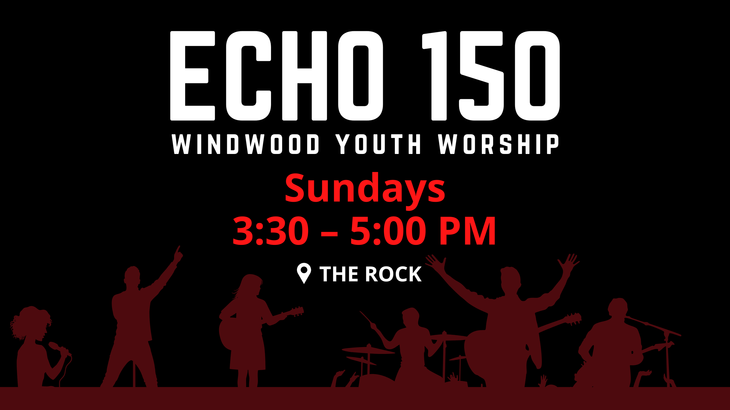 We begin with a brief Echo150 rehearsal at 8:30 AM in The Summit (our worship area in The Rock).